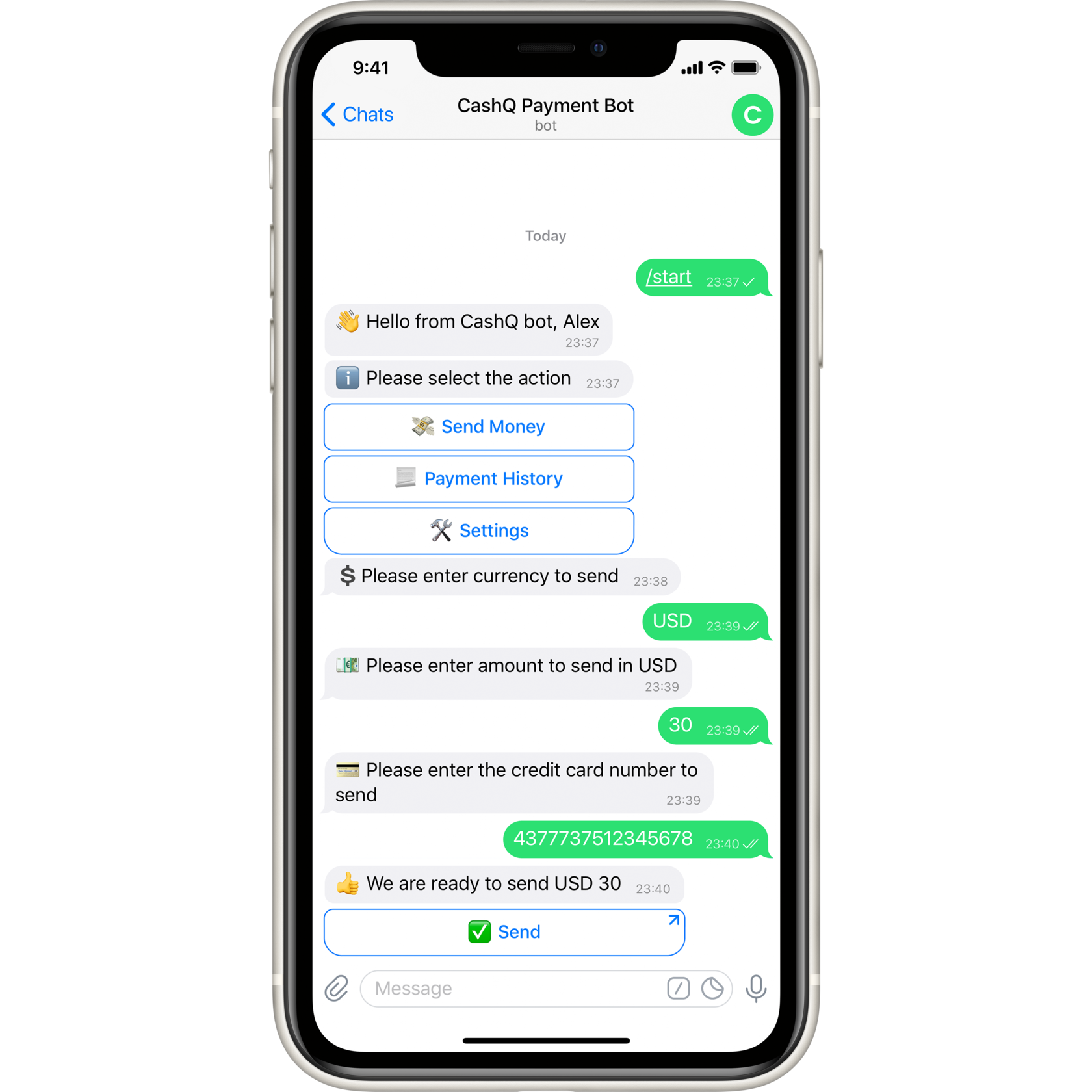Select the action you want to perform, currency, transfer amount and recipient card number.